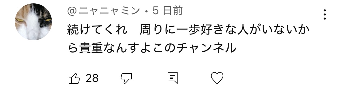 続けてくれ。周りに一歩好きな人がいないから貴重なんすよこのチャンネル